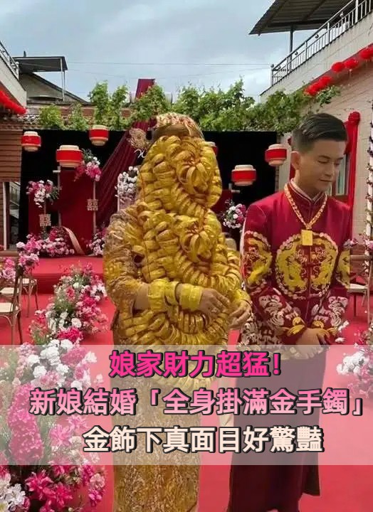 看出娘家財力!新娘結婚「全身蓋滿金手鐲」根本看不到臉 網驚喊「不會被壓垮嗎」真相太爆笑